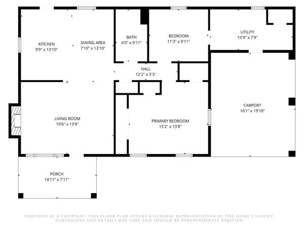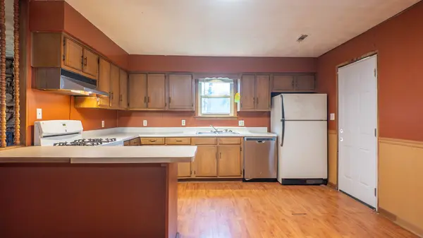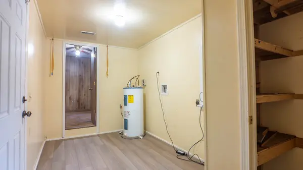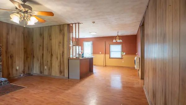 This custom rock-built home offers a comfortable 2 bed, 1 bath layout with a functional, easy flow. Hardwood flooring adds warmth in the bedrooms, while laminate runs throughout the main living areas for low maintenance. The living room features a cozy fireplace and opens into the dining and kitchen space, creating a connected feel. The kitchen offers ample countertop space and everyday practicality, with outside access. The utility area has access to the attached one-car carport. Minor updates have been made, giving the home a solid foundation with room to make it your own.